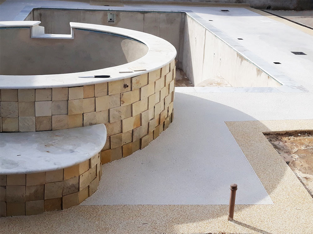 Feito a partir de cimento, mármore, granitos naturais, aditivos granulados de calcário, entre outros materiais. O piso Fulget apresenta uma textura áspera, o que o torna antiderrapante e, consequentemente, uma das opções preferidas para áreas molhadas, especialmente em torno da piscina, garantindo segurança sem deixar a estética e design do ambiente de lado.